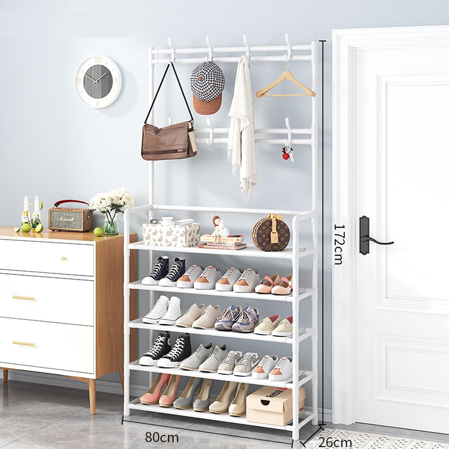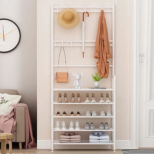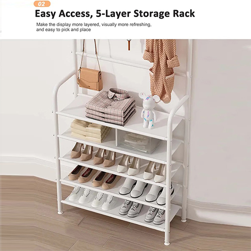منظم أحذية ومعاطف 5 طبقات من الإستانلس ستيل، تصميم عملي وأنيق لتخزين الملابس والأحذية بسهولة ومرونة داخل المنزل.