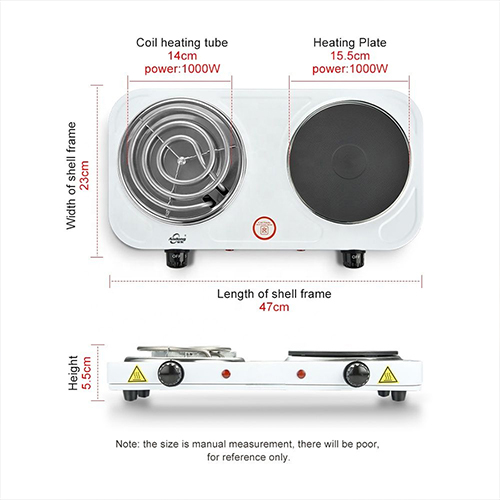 موقد كهربائي مزدوج DENX DX2804 بقدرة 2000 واط من حديد مصبوب وتحكم حراري