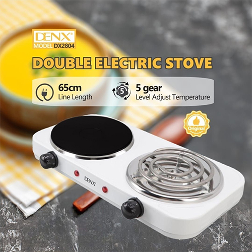 استمتع بطهي سريع وآمن مع موقد كهربائي مزدوج DENX DX2804 بقدرة 2000 واط، مصنوع من حديد مصبوب، يحتوي على 5 مستويات حرارة للتحكم الدقيق وأداء ثابت