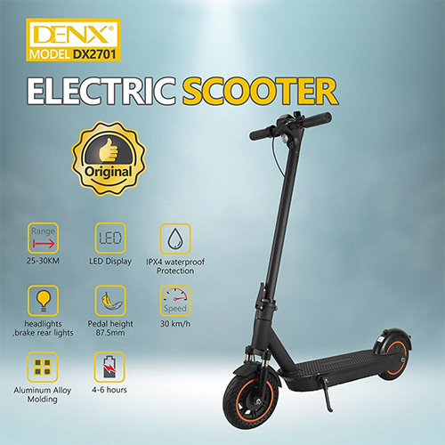 سكوتر كهربائي DENX DX2701 بسرعة 30 كم/ساعة، مدى يصل إلى 30 كم، وحماية مقاومة للماء IPX4