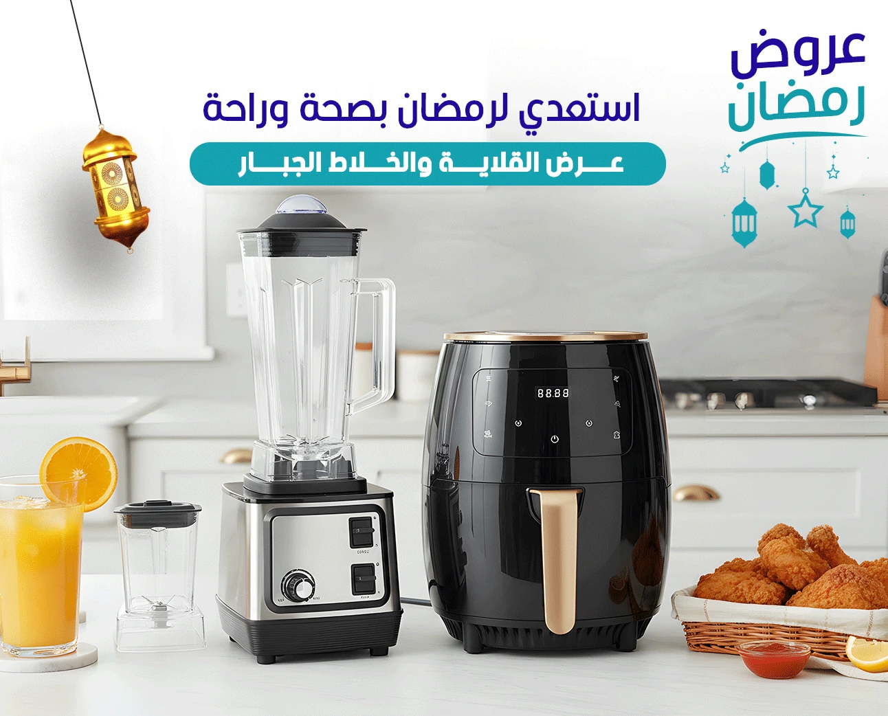 احصل على عرض مميز يشمل مقلاة هوائية Primo Plus بقوة 2400 واط وسعة 6 لتر مع خلاط وعصّارة NEW GOLDEN CREAT بقوة 8500 واط وسعة 2.5 لتر