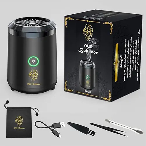 استمتع برائحة فاخرة مع مبخرة البخور الكهربائية BK-18 المحمولة، تصميم أنيق، شحن USB، حجم مدمج مثالي للمنزل والمكتب وتعطير سريع وفعال.