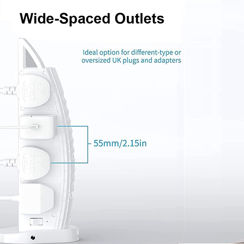 - 8 منافذ تيار متردد: تتيح توصيل العديد من الأجهزة الكهربائية في وقت واحد.