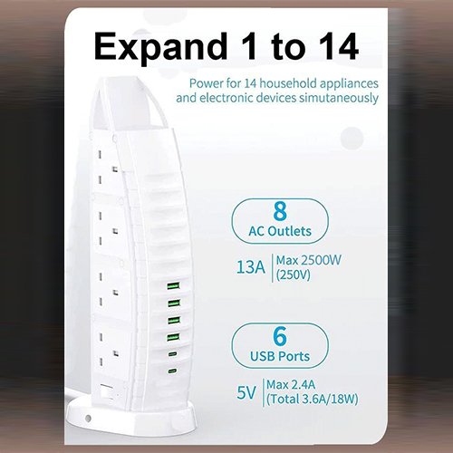 هل تبحث عن توصيلة كهربائية تجمع بين الأمان، الأداء العالي، والتصميم الأنيق؟ توصيلة برج العرب الكهربائية هي الخيار المثالي لك! مزودة بشاشة رقمية لعرض الفولطية ونظام حماية متكامل ضد الأحمال الزائدة، مع 6 منافذ USB و8 منافذ تيار متردد لتلبية جميع احتياجاتك. مثالية للاستخدام في المنزل والمكتب وحتى أثناء السفر. احصل على توصيلة برج العرب الآن واستمتع بالراحة والحماية الكاملة لأجهزتك الإلكترونية.