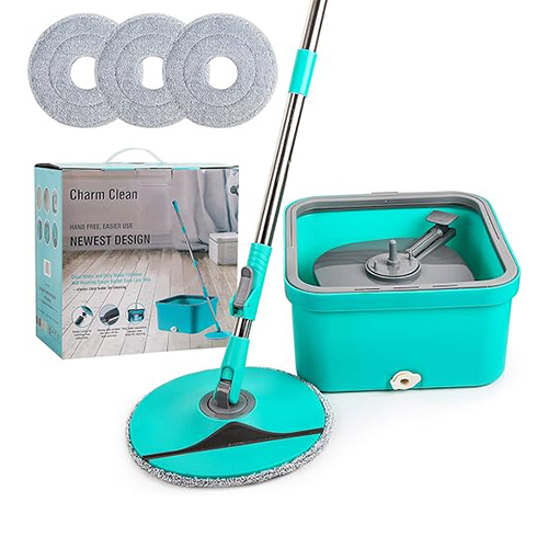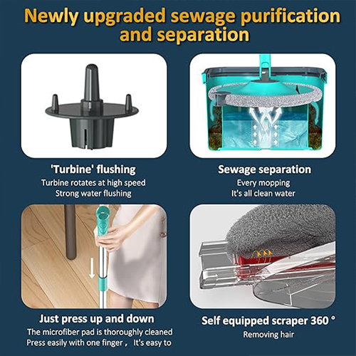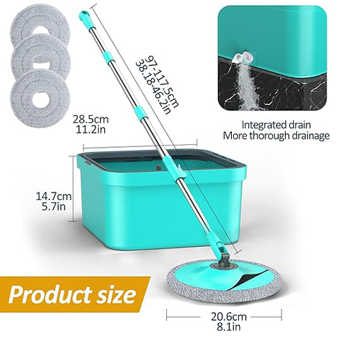 نظف أرضياتك بكفاءة وسرعة مع مجموعة التنظيف الاحترافية ذات الممسحة الدوارة والدلو مع وسادات مايكروفايبر قابلة للغسل وإعادة الاستخدام