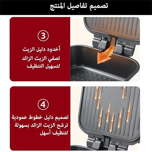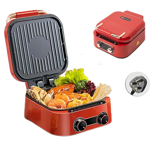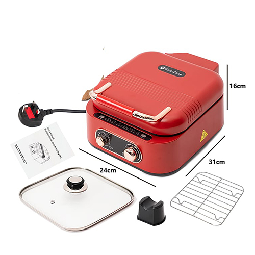 قدر وشواية كهربائية DENX DX3421 بسعة 2.5 لتر و1800 واط، سطح غير لاصق، ألمنيوم مصبوب، مثالي للطهي والشواء السريع في المنزل.