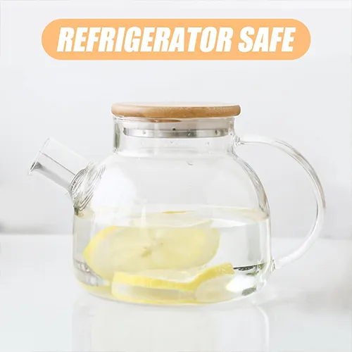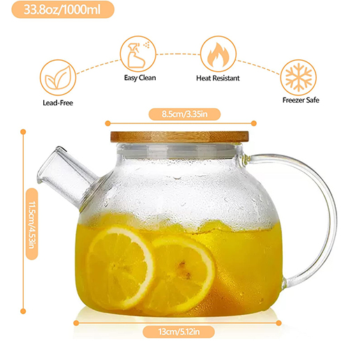 إبريق شاي زجاجي أنيق بسعة 1000 مل مع غطاء خيزران، تصميم يدوي وفاخر لتجربة شاي مميزة وعملية في المنزل والمكتب.