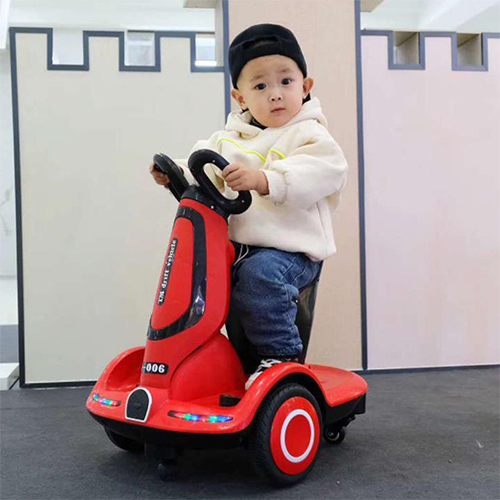امنح طفلك تجربة ممتعة وآمنة مع السكوتر الكهربائي الذكي، مزود بريموت تحكم، موسيقى، إضاءة LED، وحزام أمان، تصميم أنيق باللون الأحمر.